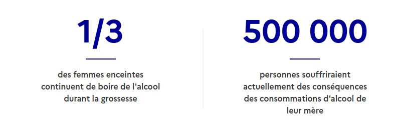 Alcool, tabac, cannabis et grossesse : protéger l'enfant de l'expositon aux substances psychoactives. 738 000 enfants sont nés en France en 2021. 1 sur 1000 est né avec un syndrome d’alcoolisation foetale complet, et 1 sur 100 souffre ou souffrira de troubles causés par l’alcoolisation foetale (TCAF) directement liés à la consommation d’alcool durant la grossesse. Les conséquences se caractérisent par des difficultés d’apprentissage, des troubles de la mémoire ou du comportement ainsi que par une plus grande vulnérabilité au risque d’addiction au cours de la vie. Ainsi en France, près de 500 000 personnes vivraient avec des symptômes variés liés à la consommation d’alcool de leur mère au cours de la grossesse. La consommation d’alcool pendant la grossesse représente ainsi la première cause de handicap mental non génétique et d’inadaptation sociale de l’enfant en France.